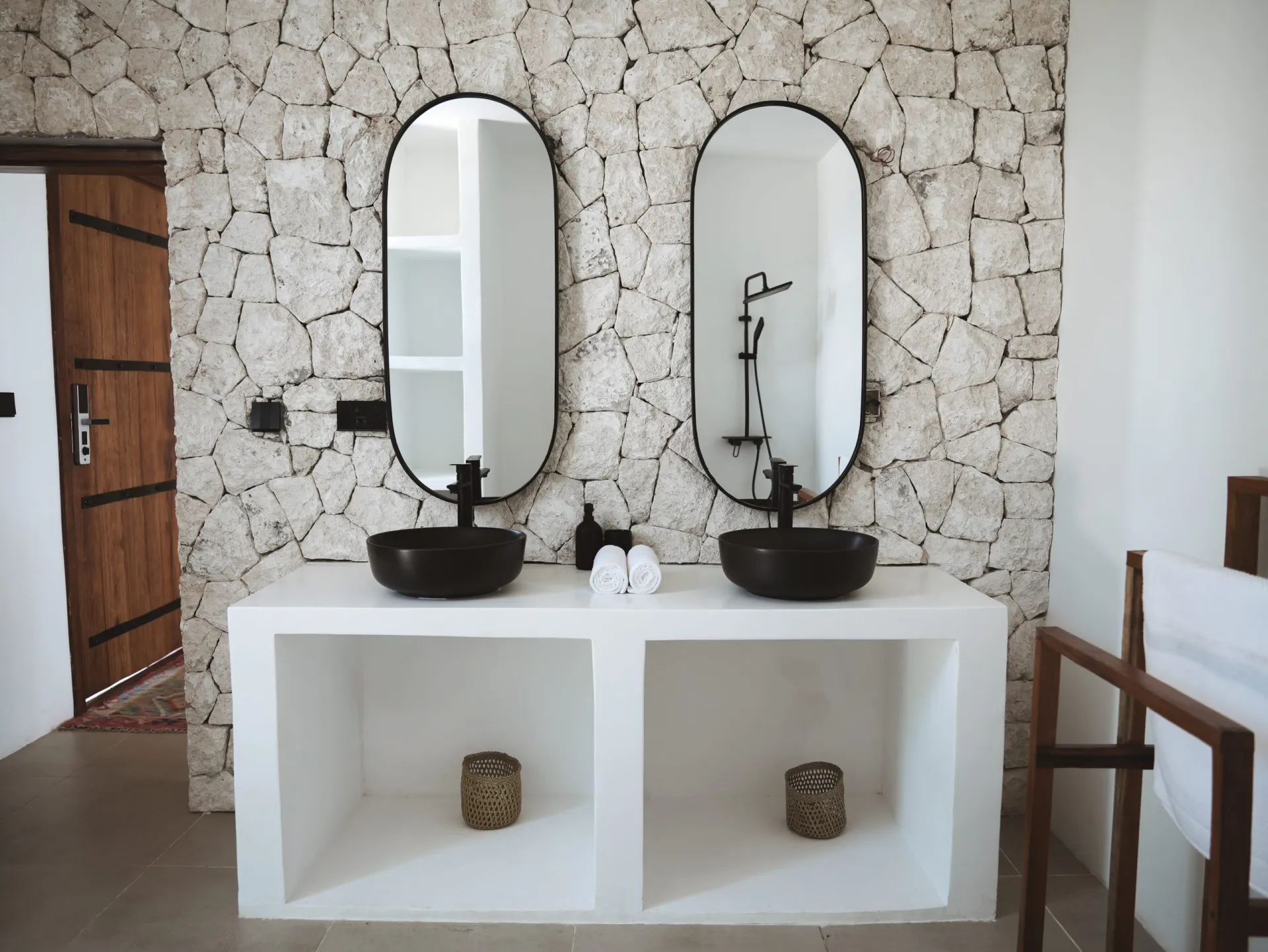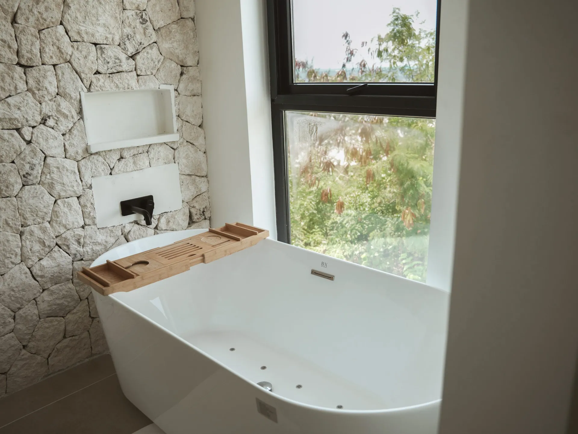 La suite principale dispose d'une baignoire, douche et dressing vue mer. Construite en 2024, elle bénéficie de la loi de retrait côtier de 15 mètres garantissant intimité et protection de la valeur à long terme.